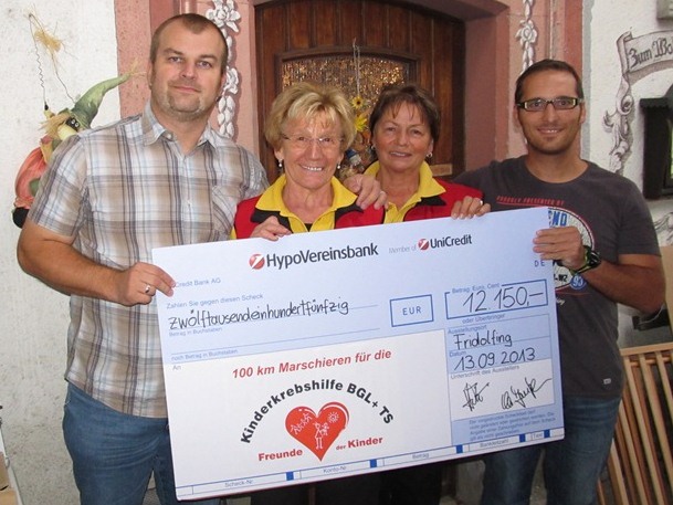 Am 13. September 2013 konnten wir den Scheck an die Kinderkrebshilfe Berchtesgadener Land und Traunstein e.V. übergeben. On September 13th, 2013 we handed over the cheque to the "Kinderkrebshilfe Berchtesgadener Land und Traunstein e.V." (Children's Cancer Aid).